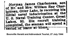 The letter also said Dad would be sent to Pre-Radio School after Navy indoctrination. By July 1944, according to the news story below, Dad was in Michigan receiving his initial Navy boot-camp training.